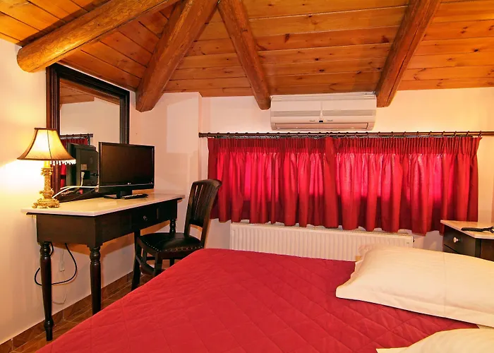 Das Hotel Varonos verfügt über Zimmer mit einem Essbereich sowie balkengestützten Decken für Ihren Komfort. Neben einer begehbaren Dusche und einer getrennten Toilette zählen auch ein Haartrockner und Badelaken zur Ausstattung des Badezimmers. Auch diese klimatisierten klimatisierten Zimmer bieten einen Blick auf die die Stadt.